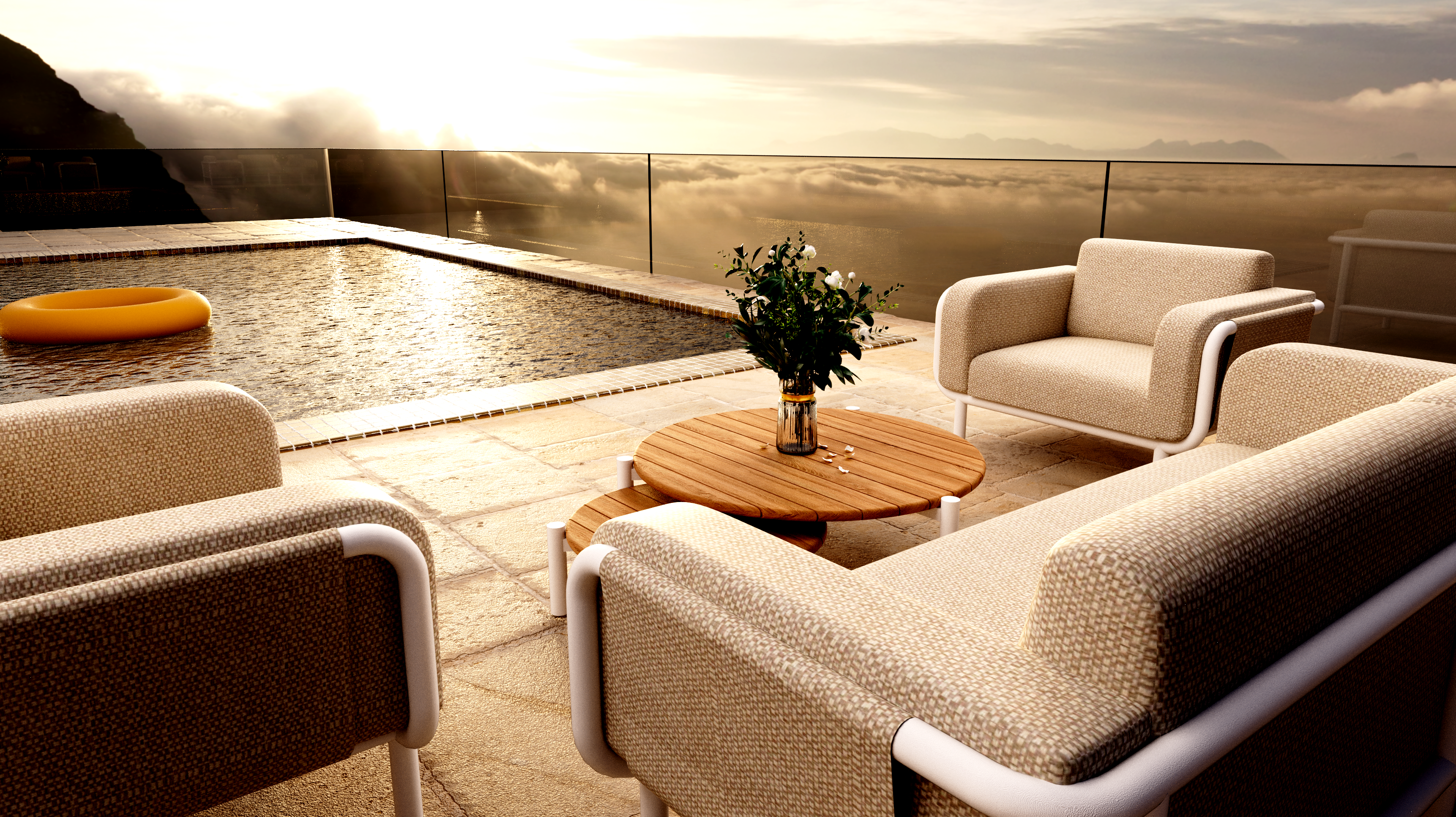 Lounge : 1000 x 770 x 566 mm | 2 Seater : 1964 x 770 x 566 mm | Coffee Table Big : 900 x 900 x 280 mm | Small Table : 600 x 600 x 215 mm - Top: Teak