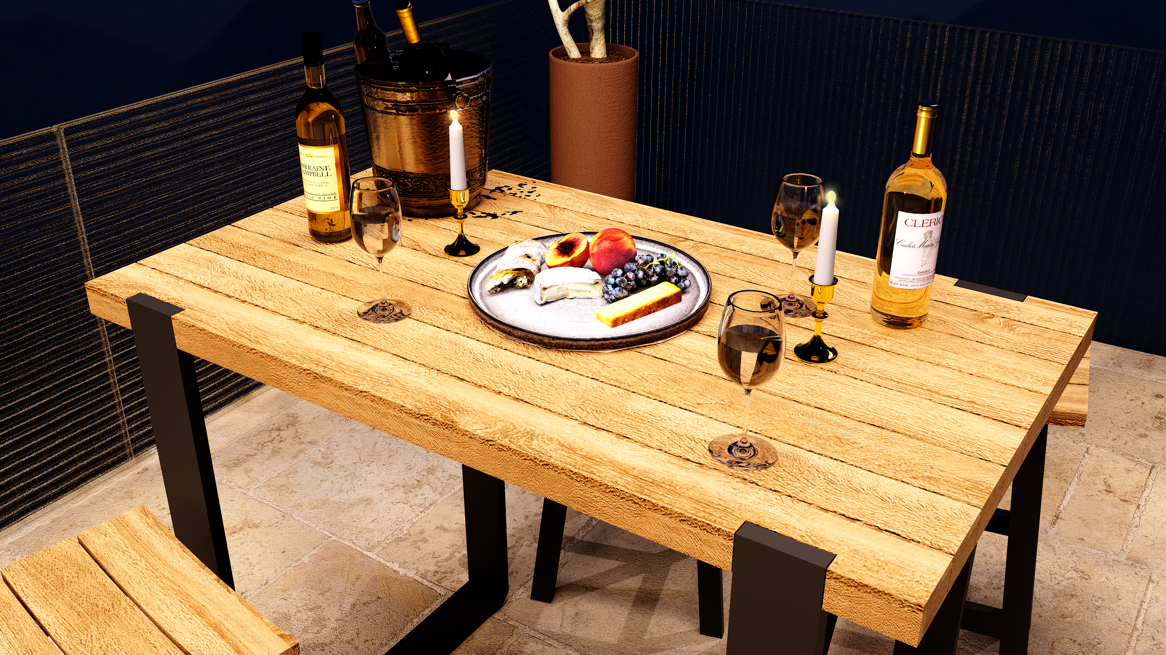 Bar Table : 1300 x 750 x 1060 mm | Bar Chair : 420 x 320 x 770 mm - Top : Teak