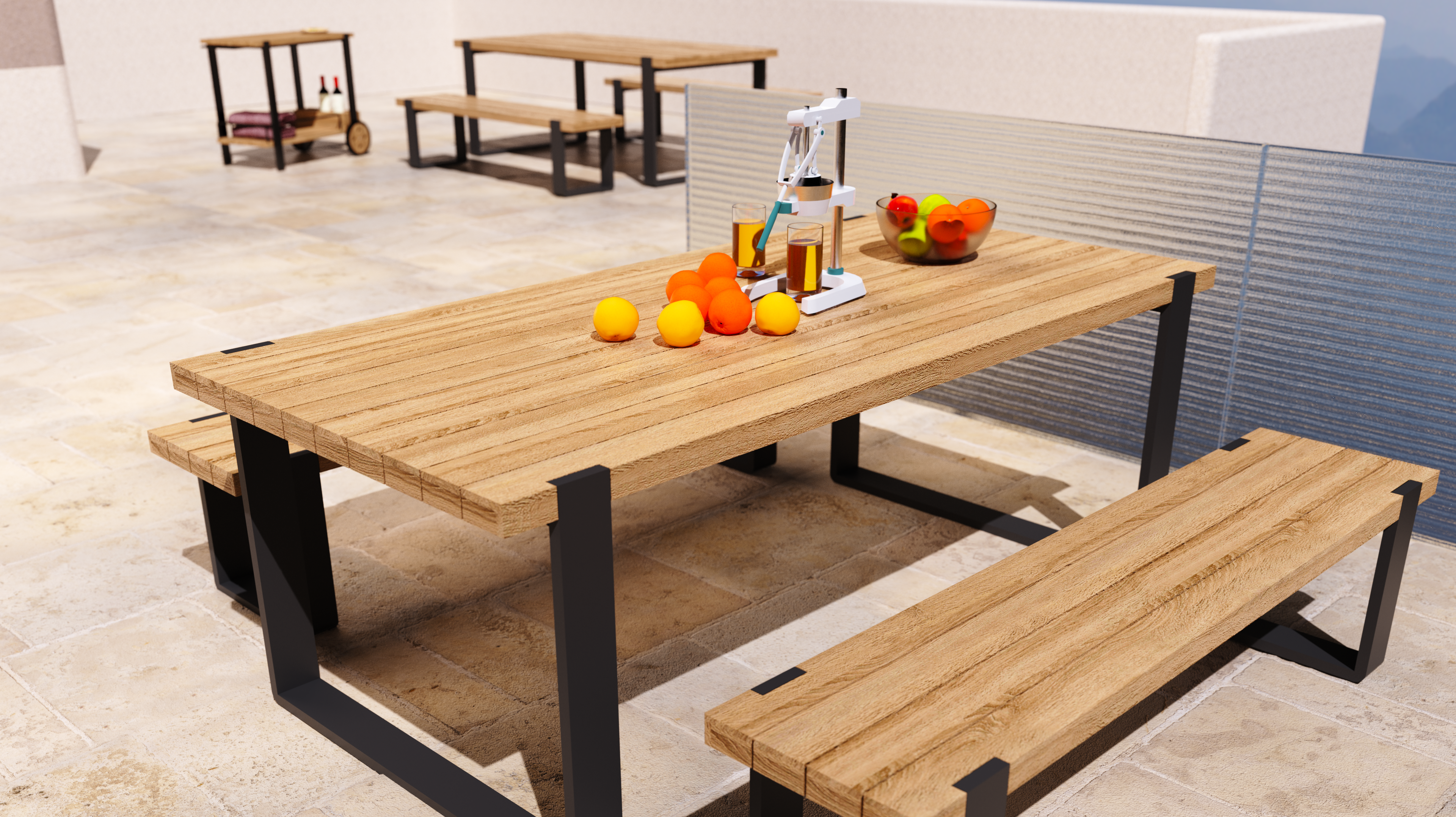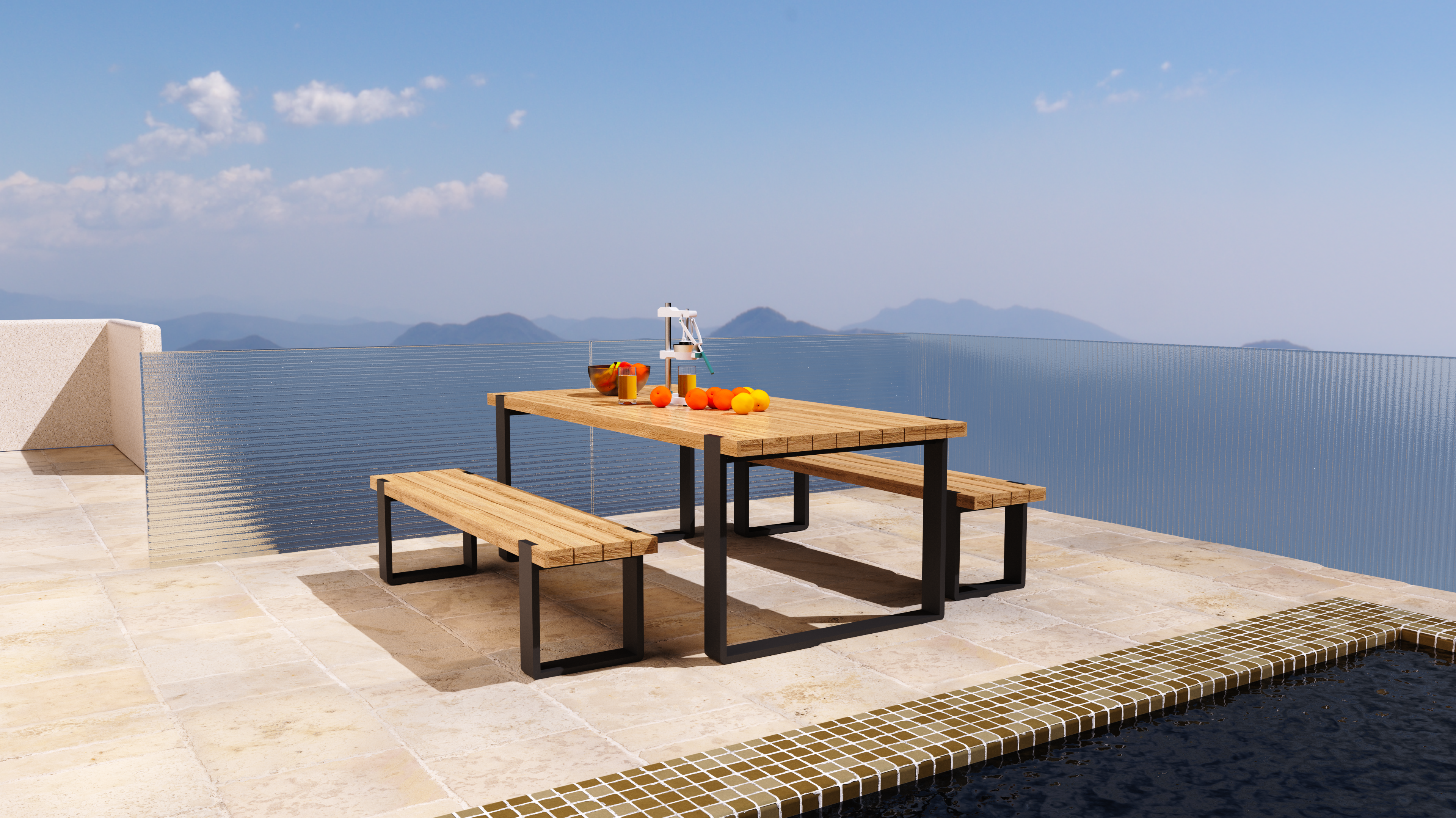 Dining Table : 2100 x 1000 x 780 mm | Bench : 1800 x 400 x 440 mm