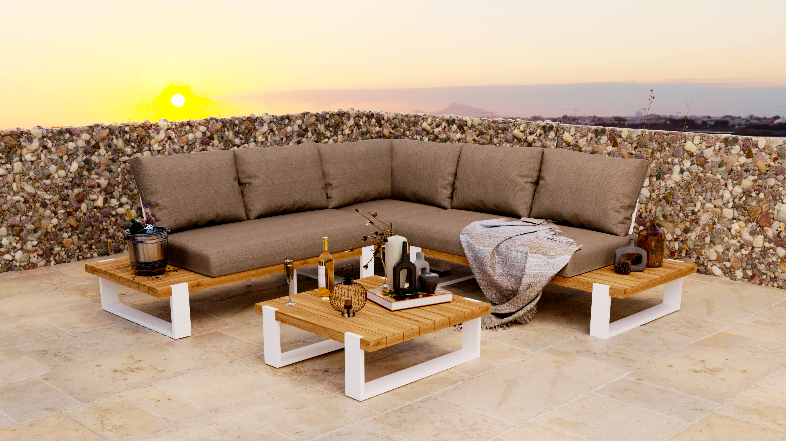 2 Seater : 1725 x 828 x 690mm | 3 Seater : 2550 x 828 x 690mm | Coffee Table : 830 x 830 x 300mm - Top : Teak