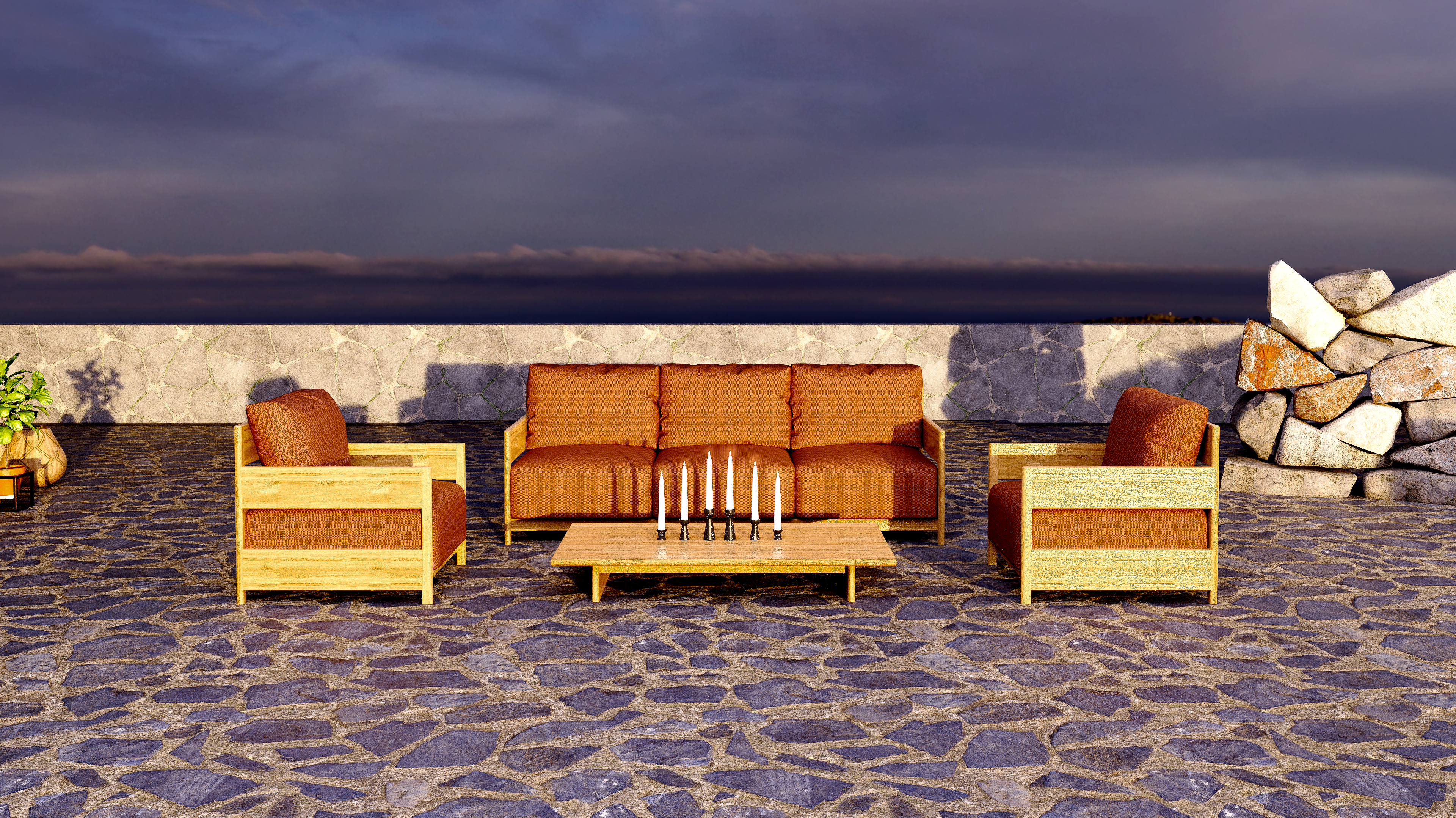 Lounge : 760 x 800 x 747 mm | 3 Seater : 2160 x 800 x 747 mm | Coffee Table : 1400 x 800 x 215 mm - Top : Teak | Ceramic